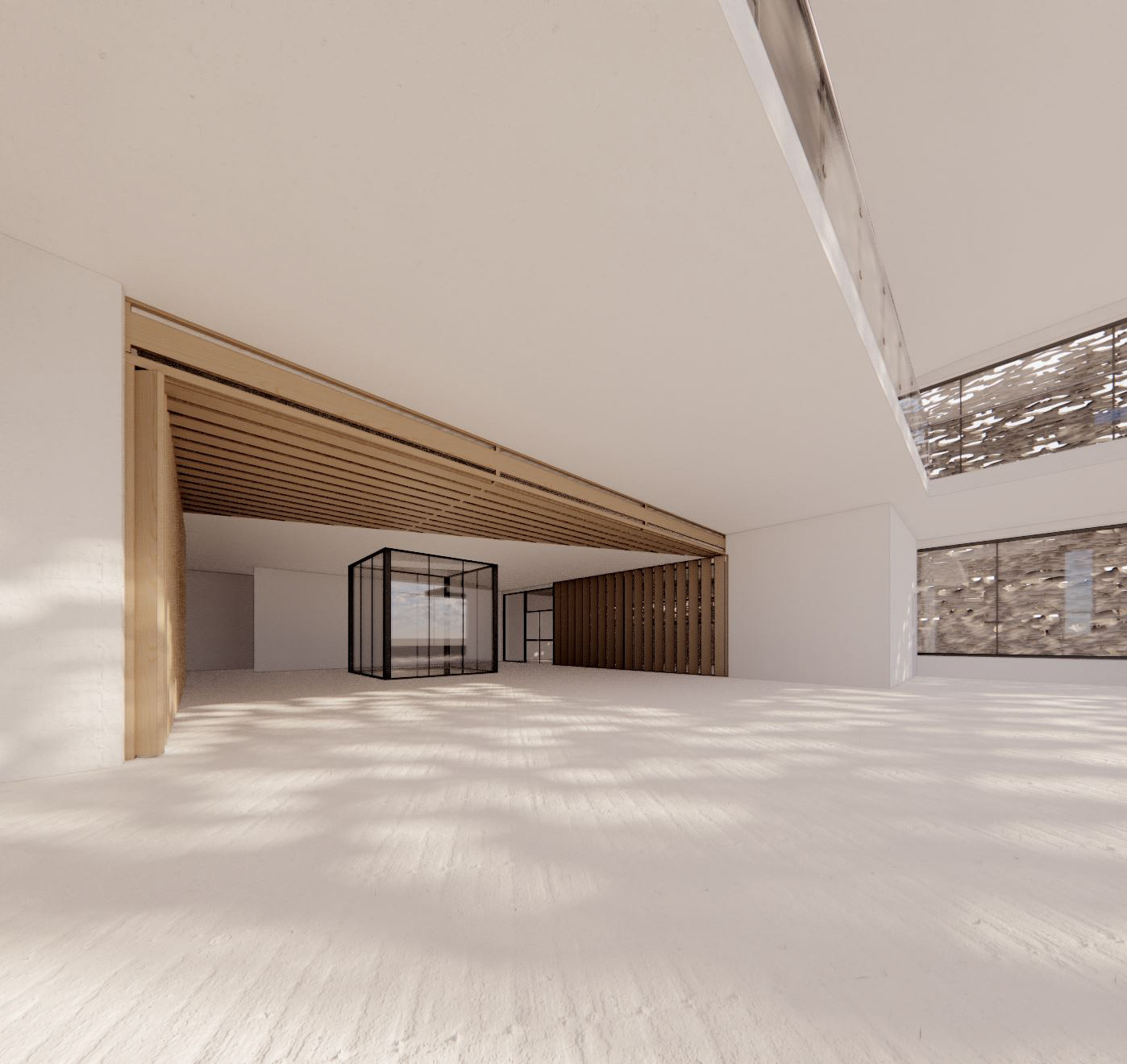 On the interior I then experimented with additional materials to accent and soften areas. An ash timber was added.
