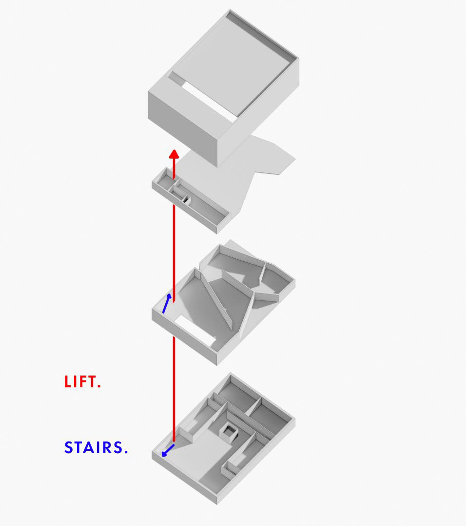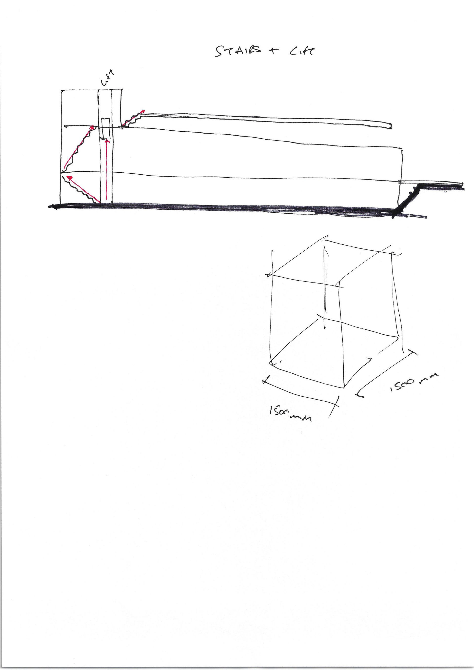 Approximate lift dimensions. Layout of stairs and lift in section.