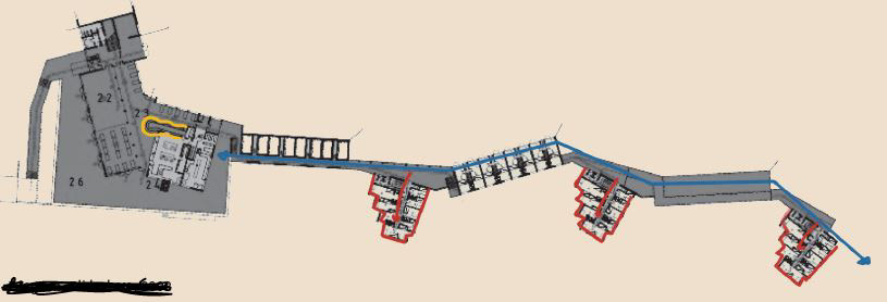 The buildings were instead fit for purpose and use, with their sober architectural language conveying this. This helped to provide a sense of hope from the ruins, of aspiration which is important for education and would have been especially necessary after a draining war. From plan the campus resembles a village. A dark forest lays in front of a flat, geometric white building, behind that, a hazed grey tangled city. It is complete with the five buildings gracefully climbing the slope with only the four-story inhabitable tower exceeding two stories. ‘’transient. the past is behind us. ahead, white, the blocks of the future. a glorious castle of the future.''