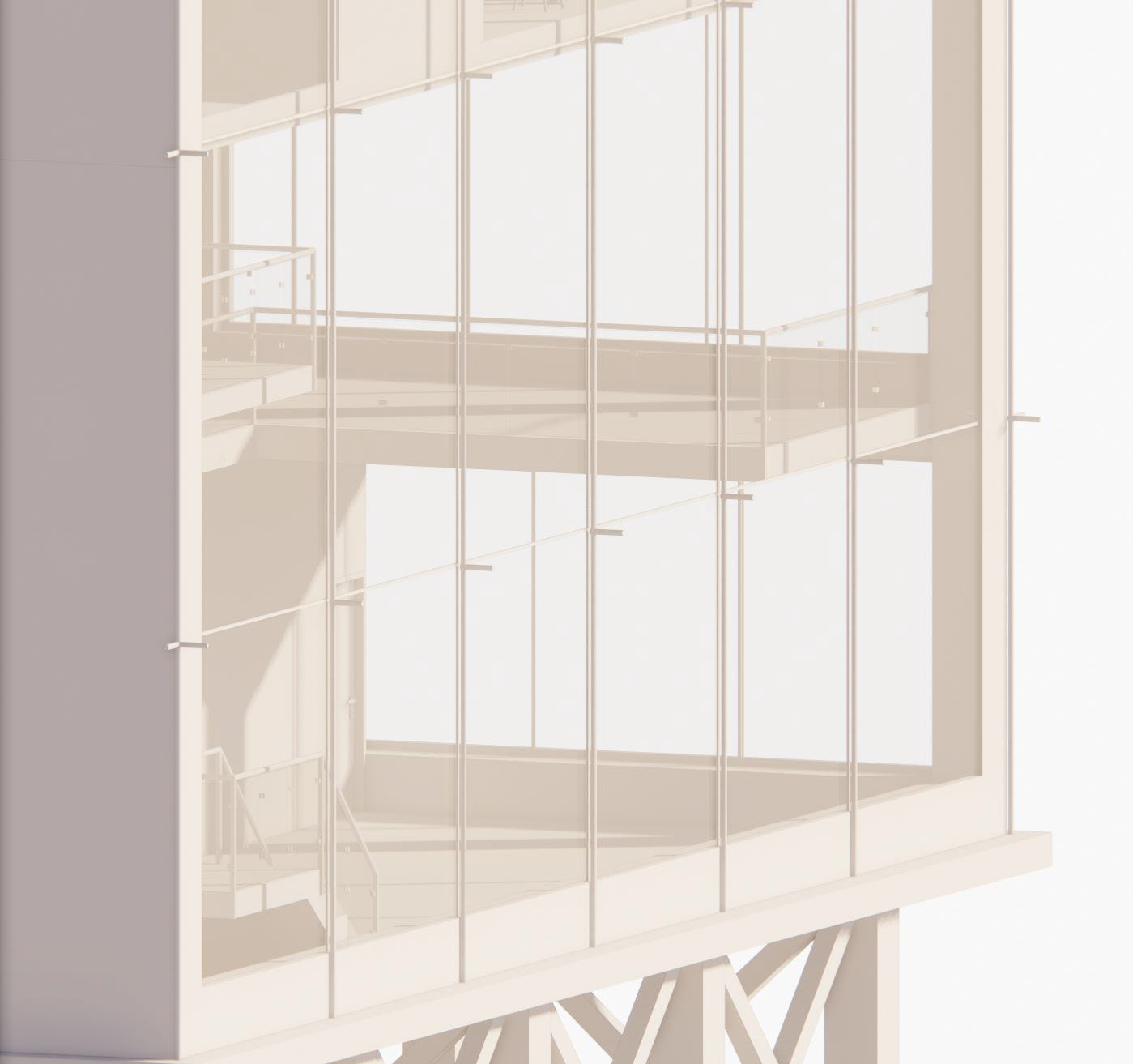 The series of columns that surround the three sides where the skin exist. These tie into the top roof and bottom floor of the building.